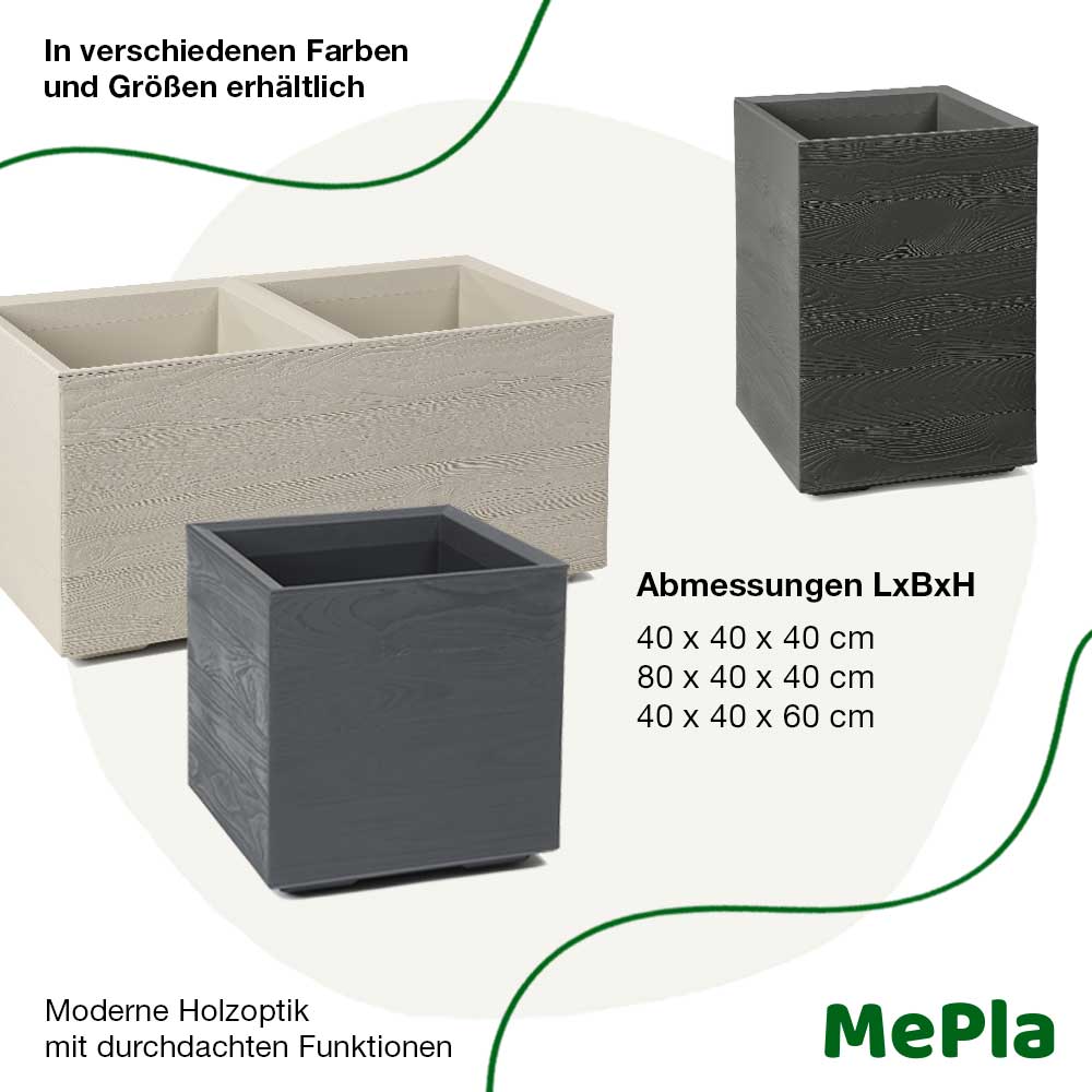 Durch verschiedene Längen und Höhen lassen sich die Pflanzkübel flexibel kombinieren – perfekt als stilvolle Terrassenabgrenzung, Sichtschutz oder Raumteiler. Aktuell erhältlich in den trendigen Farben Anthrazit und Beige.