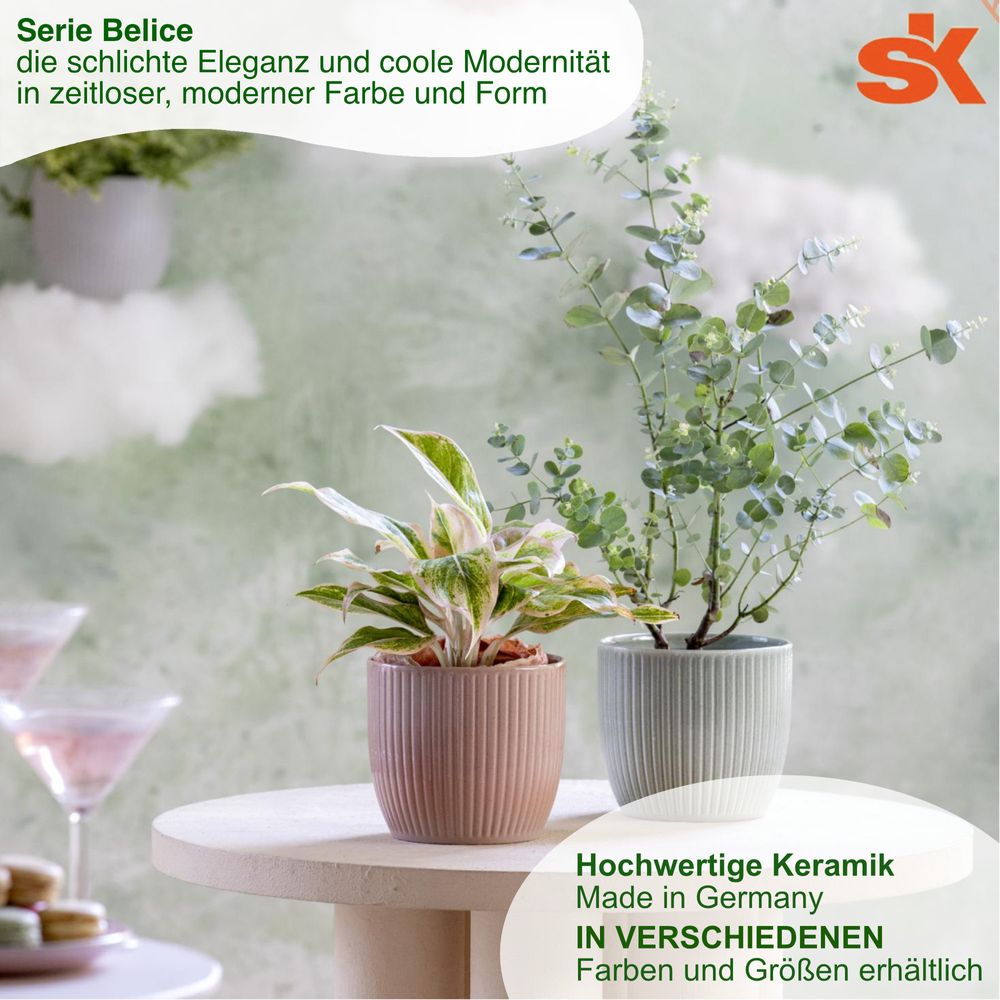 Das Set aus Übertopf Belice und passendem Pflanztopf von Soendgen Keramik bietet modernes Design und bewährte Qualität aus dem traditionsreichen Westerwald. Der Keramikübertopf Belice überzeugt durch seine glatte, längs gerillte Oberfläche, die ihm eine elegante Struktur und einen stilvollen Charakter verleiht.