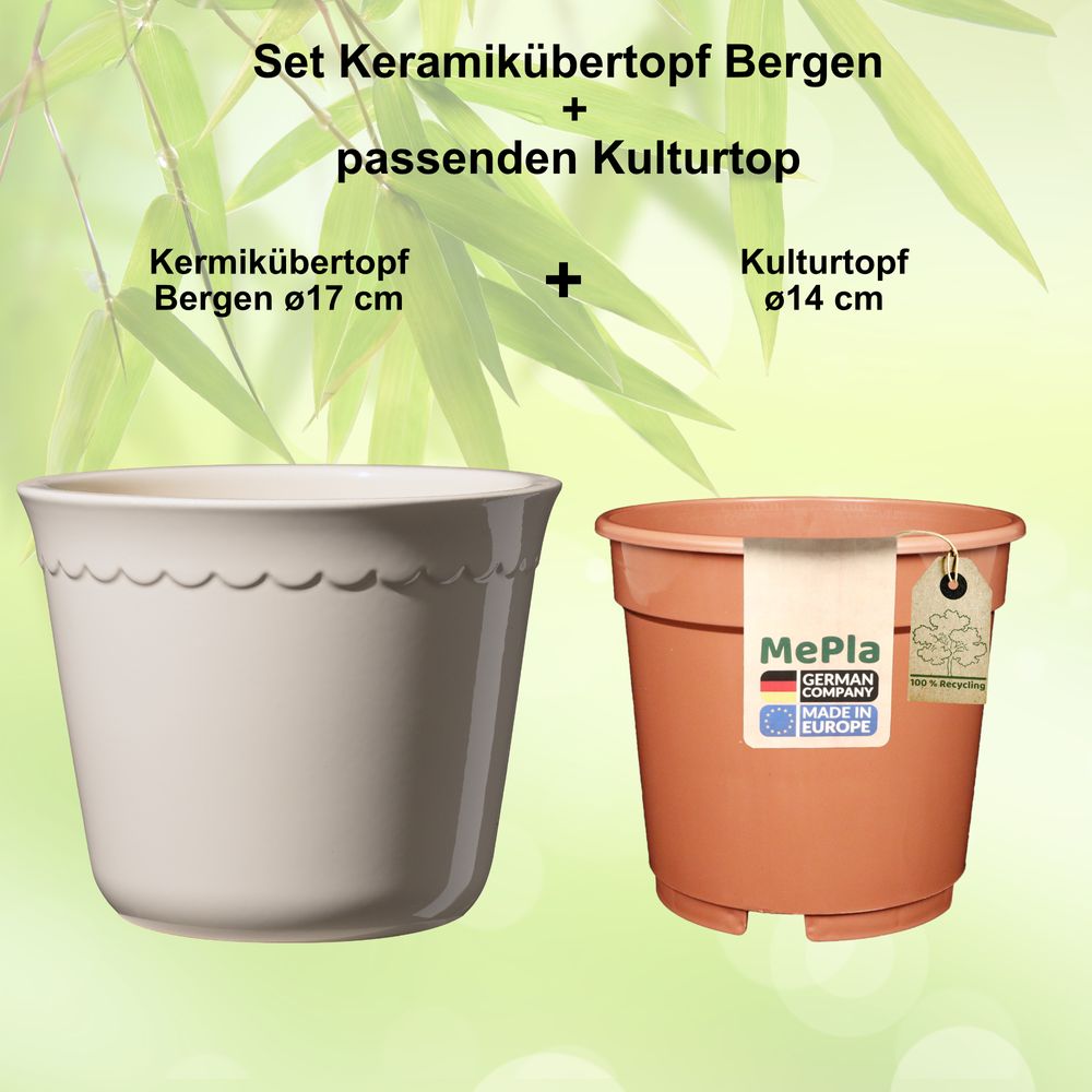 SICHERE ZAHLUNGSet Keramikübertopf + Kunststoff-Pflanztopf