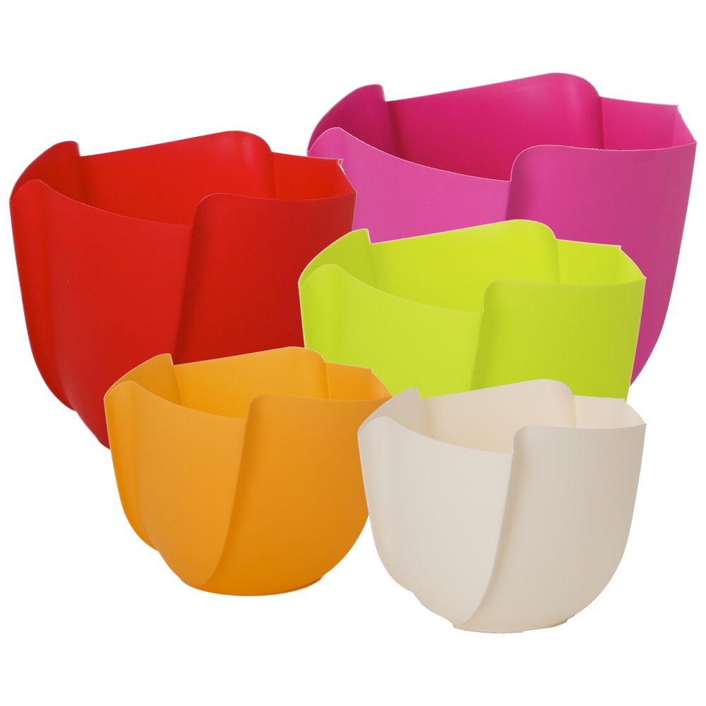 Erhältlich in mehreren Größen (ø14 cm, ø17 cm, ø19 cm) und praktischen Sparpaketen zu 5, 10, 20 oder 40 Stück – je größer die Menge, desto günstiger der Stückpreis. Ohne Bodenlöcher, daher auch ideal für Innenräume. Der Twister Übertopf ist umweltfreundlich, wiederverwendbar und setzt moderne Akzente auf Balkon, Terrasse oder Fensterbank.