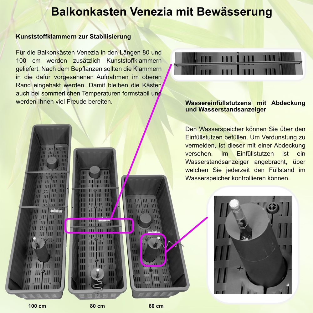 Balkonkasten mit Wasserspeicher 60cm 80cm 100cm – Made in Germany – langlebig, selbstbewässernd und direkt bepflanzbar
